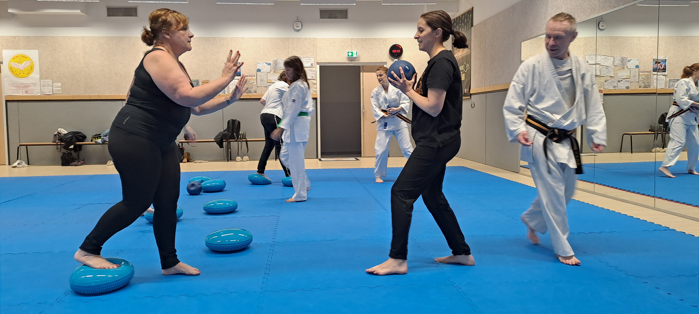 Durant cette initiation, il a été proposé plusieurs ateliers permettant de réagir face à diverses situations de danger : trouver une issue pour se sortir du danger ; bloquer une gifle ; esquiver une tentative de saisie des épaules ; se défaire d’une saisie du poignet, d’un étranglement contre un mur ou d’un blocage au sol ; réaliser une clef de bras…